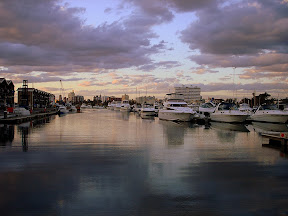 After a rather successfull meeting, it was back to the purple monster and off for some lunch. Since it was my first time in the Sydney area, John and Kerri decided that they wanted to take me to Bondi Beach. I wasn't going to protest. Bondi Beach is the big, popular beach area in Sydney. It's also where the Aussie celebs hang out. In this photo, supposedly people like Nicole Kidman, Hugh Jackman, etc. own places in that white building on the right. Even though it is still technically winter, there were still people hitting the water, sunbathing, etc. John and I took a moment to pose for a photo with our fine rental automobile. We found a greek restaurant across the street for some lunch before heading back to the airport for our flight back to Melbourne. The team here is going to be working hard to try to get me to eat some seafood. Now, I'll try some things, but one of the selections they chose at the greek place was not on my list. At first, it looked like a small bowl of onion straws or onion rings. Only upon closer inspection did I realize that they were tiny little fish that had been breaded and fried. Yeah...like the little fish you keep as a pet...the whole thing...fried...to be eaten...whole. No thanks. So, back to the Sydney airport. We fought through rush hour traffic only to slightly miss our 5pm flight. But we knew this was going to happen so we got on the 5:30pm flight. Needless to say, there are a lot of flights between the two cities. I got home around 8pm and we dove in to looking up rental places to inspect the next morning. We found six that we wanted to check out. The first place we looked at in Mitcham, at around 9am, was something to behold. We really regret not taking photos of it. Upon walking through the doorway we immediately realized why there were no interior photos online. Not only was each room covered in hideous, dark, 40-year-old wallpaper, each room got progressively worse as you walked through the house. Think of a pattern that you've seen. Any pattern, doesn't matter. Got one in your head? Good. Yes, that pattern was on the walls of this house. We quickly left this location and moved on to the next. The next place was in Donvale, just slightly to the north of Mitcham. When I say "slightly" I mean, like 2-4km. The suburbs here are more like what we're used to simply calling neighborhoods, but they each have their own post code here. We had three places to check out in the same basic area in Donvale. The first one had some major potential. A nice little three bedroom 1.5 bath cottage type house in on a nice looking little street. Nice hardwood floors throughout. Recently updated kitchen. Nice back porch and back yard area (within a fence that is connected to the car port). Overall, one of the first places we saw that we could really picture ourselves in. We had seen one the week before in Mitcham, very close to the new office, that was more like a townhouse that we kind of liked. Good location, tons of space, but it had kind of, well, weird space. We couldn't see the best way to do the living rooms and stuff. That, and it had very blue carpet everyway. Still, we had put an application in for it. Back to the place in Donvale though. Amazingly, we were the only ones to show up for the inspection. Usually there are at least 4-6 families/couples checking out each place. We were alone. So we got to talk to the agent and she said if we got our application in quickly, they'd see it first thing Monday and we'd have a great chance at getting the place. At this point we had more than 30 minutes before looking at the next place which was right around the corner, so we explored a little bit. We found a great little shopping center right around the corner. It had a Coles (the nice grocery store chain here) and a ton of great little places to give it a cool downtown feel (eventhough we're in the 'burbs). There were a couple of bakeries (great fresh pastries in the morning), a butcher, a market with fresh fruits and veggies, a great flower shop, a couple of cafes and restaurants. It was great, and it was all within a short walk from the neighborhood we were just in. I'll wrap up the rest of the "Quest for a House" for Saturday quickly here. We looked at 4 more places that morning. Two were...eh..ok. Two were...eh..no chance. We then had the rest of the day to do what we wanted so we hit yet another big shopping center/mall in Ringwood (feel free to Google Map these different suburbs I mention...it's easy if you just look for Ringwood, Victoria, Australia). Saturday night we rented "Wild Hogs" from the rental place down the street. Leslie is the official member. Kind of exciting actually. No permanent address. No car. No drivers license. But we can rent DVDs! Also, on Saturday, we coordinated plans to have dinner Sunday evening with Shinko and her boyfriend, Kevin. (For those who don't remember, Shinko is one of Laura's good friends from high school and college who has lived in Melbourne for the past 4 years) Sunday...we slept in. We actually joined the "Friends of the Zoo" program which is one annual fee with unlimited access to the zoo (plus two more zoos in Victoria, discounts at the shops, etc.). We figured that if we go to the zoo more than twice in a year, it pays for itself. Sold! The weather was perfect, as usual, and we checked out about half of the zoo. We made sure to see the Australia section, naturally. It's so unlike a US zoo. The section with the kangaroos, emus, etc. was just an open area for the most part. One big emu just kept walking up to people (and scaring the bejezzus out of them). Next it was back to the house to change for dinner. Shinko recommended a place called Riva in St. Kilda. Hopefully you just Google Mapped St. Kilda to find that it is right on the water. It's a very trendy beach area just outside of downtown. We got there just before sunset and the views of the water and the city were unreal.