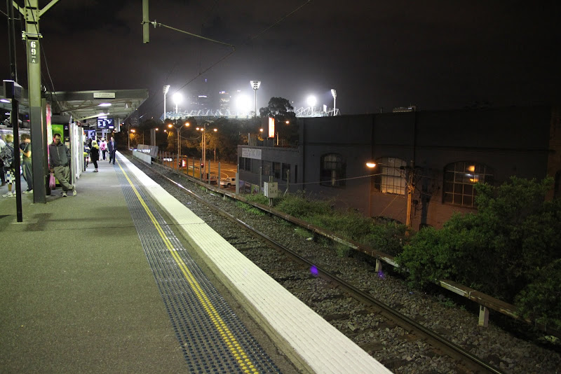 The view back to the Melbourne Cricket Ground while waiting for the train at Richmond station after the Twenty20 cricket match between Australia and Pakistan. I left the match a little early. 10 minutes after this photo was taken, the game was over and the train station was crowded with people.