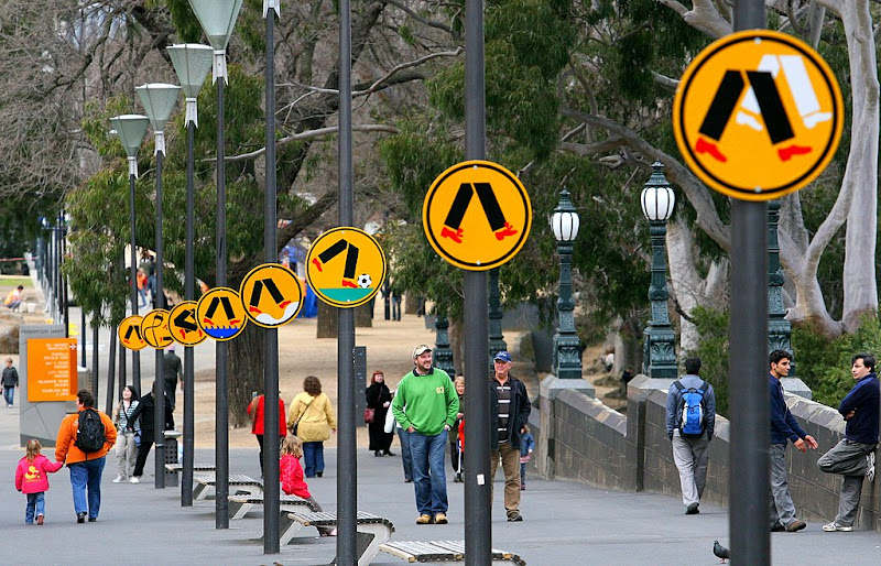 Along the Yarra River in Melbourne last year they had hung up slightly different crosswalk signs.