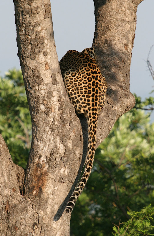 A leopard starts to stalk a herd of impala in Kruger Park, South Africa. I just loved the patterns on the back and tail of this one.