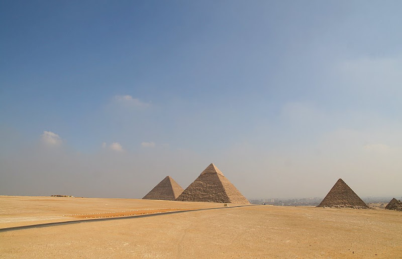 Even the massive pyramids in Cairo, Egypt can look small from across the desert.